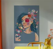 Questo ritratto, vivace e colorato, combina una donna con un mazzo di fiori di campo. Il tutto è stato dipinto digitalmente (non è stata utilizzata l'IA).