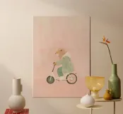 Leone in bicicletta, stampa per bambini per la cameretta, stampa leone divertente