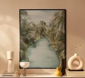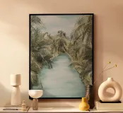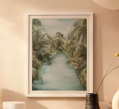 Filippine Fiume della giungla Tropicale Isola di Siargao Illustrazione ad acquerello Portate una fetta di paradiso isolano sulle vostre pareti con questa sognante illustrazione ad acquerello del fiume della giungla dell'isola di Siargao, nelle Filippine. Dipinta con toni morbidi e solari, questa stampa d'arte cattura la serenità lussureggiante delle palme tropicali, del fiume tortuoso e delle vibrazioni selvagge della giungla di Siargao - perfetta per gli interni boho, gli amanti della spiaggia e i sognatori dei viaggi. Questa stampa d'arte naturalistica unisce dettagli raffinati alla rilassata magia dell'isola. Se avete voglia di un po' di evasione tropicale, questo pezzo porta con sé calma, vagabondaggio e un tocco di selvaggio.