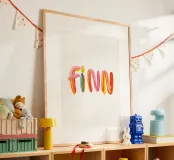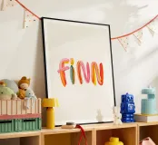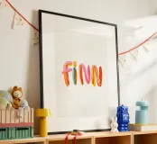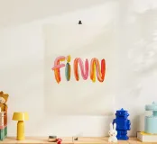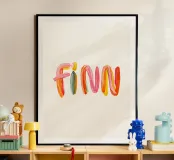 Il nome "Finn" è composto da pennellate colorate e allegre.