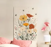 Un motivo vivace e allegro che mostra una varietà di fiori estivi in fiore dai colori caldi. Numerose api ronzanti circondano i fiori, creando un'atmosfera di leggerezza, gioia di vivere e natura in fiore. Lo stile illustrativo conferisce all'opera un carattere affascinante, quasi nostalgico. Ideale per tutti coloro che desiderano portare l'estate in casa, in salotto, nella stanza dei bambini o in ufficio. Si rivolge in particolare agli amanti della natura, agli appassionati di giardinaggio e ai fan dei motivi floreali.