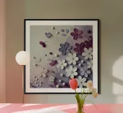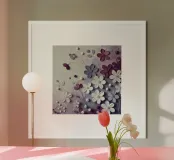 Il colore applicato crea una texture vivace, quasi tangibile, che infonde vita ai fiori. Nonostante le pennellate decise, il dipinto irradia una struttura calma che pone lo spettatore in un dialogo tranquillo con la natura. I colori viola e bianco si armonizzano perfettamente e trasmettono una sensazione di pace e innocenza. Quest'opera d'arte è un'ode alla bellezza tranquilla e travolgente della natura, toccante nella sua semplicità e profondità.