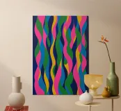 Un motif abstrait audacieux avec une touche d'énergie dynamique qui symbolise le mouvement et la fluidité. Des couleurs vives pour évoquer des thèmes tels que l’eau, la vie, et le mouvement. Une fusion innovante entre tradition et modernité pour des intérieurs contemporains et minimalistes. un langage visuel unique qui transcende les frontières culturelles.