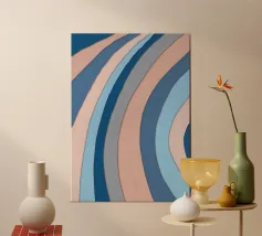 Un audace motivo astratto con un tocco di energia dinamica che simboleggia il movimento e la fluidità. Colori vivaci che evocano temi come l'acqua, la vita e il movimento. Una fusione innovativa di tradizione e modernità per interni contemporanei e minimalisti. Un linguaggio visivo unico che supera i confini culturali.