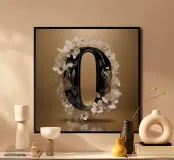 Questa splendida opera d'arte raffigura il numero 0 ornato da delicati fiori bianchi, piume e un tocco di pizzo. Lo sfondo nero mette in risalto i dettagli intricati della composizione floreale, creando un contrasto sorprendente. Questo pezzo unico ed elegante sarebbe un'aggiunta perfetta a qualsiasi arredamento moderno o d'ispirazione vintage.