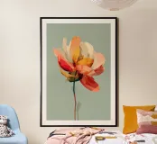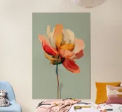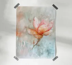 Delicata esplorazione di colore, forma e trasparenza, "Floral Study" presenta una fioritura stilizzata resa in toni pastello stratificati di corallo, ocra e fard. La composizione bilancia fluidità e struttura, evocando sia la fragilità che la resilienza delle forme naturali. Con il suo sfondo minimale e il soggetto centrato, l'opera offre un'esperienza visiva serena, quasi meditativa, ideale per interni tranquilli e moderni.