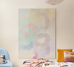 Un dipinto astratto dalla texture morbida, realizzato con colori pastello, che aggiunge profondità e tranquillità a qualsiasi ambiente. Perfetto come decorazione minimalista per interni moderni, in stile costiero o scandinavo.