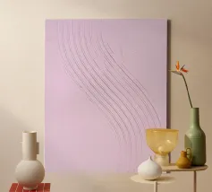 Questa opera d'arte astratta e materica gioca con un delicato rosa pastello, creando profondità, movimento e un ritmo visivo tranquillo. Attraverso la texture, la struttura in rilievo aggiunge una sensazione tattile e scultorea perfetta per gli interni moderni. Un elemento distintivo e sereno per arredi scandinavi, case sulla costa, spazi minimalisti o per chiunque ami l'arte contemporanea blu da parete.