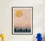 Scopri il poster "Tramonto Volante", perfetto per aggiungere un tocco di serenità e natura alla tua casa. Con un design poetico di uccelli che volano verso un sole calante, questo poster è ideale per creare un'atmosfera tranquilla in qualsiasi stanza.