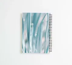 Primo piano astratto di foglie di piante delicate e azzurre con luce morbida e profondità di campo ridotta. Composizione naturalistica minimalista dall'atmosfera calma e armoniosa.