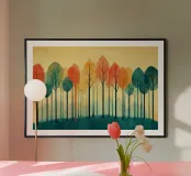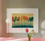 Illustrazione di una foresta autunnale minimalista in stile acquerello vintage.