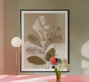 Un astratto botanico dalla texture morbida e dai toni neutri del tortora, del bianco, dell'oliva e del carbone. Le delicate pennellate e l'opacità stratificata evocano un senso di calma e minimalismo, rendendolo ideale per spazi abitativi sereni e moderni.