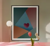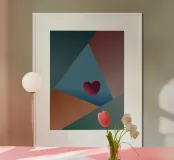 Forme geometriche colorate e un cuore rosso poster con telaio in legno