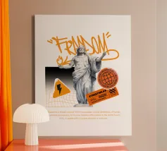 Descrizione del prodotto: Il motivo combina una statua classica con elementi moderni come scritte accattivanti, adesivi colorati e la scritta in evidenza "Dreedom". Questo potente mix di arte tradizionale e street style incarna creatività, libertà e spirito ribelle. Perfetto per chi vuole mostrare il proprio stile individuale in modo innovativo. Dettagli: Stile del design: la moderna arte di strada incontra l'estetica classica - una fusione contrastante di tradizione e urbanità. Colori: Tavolozza di colori versatile con accenti. Messaggio: Libertà per tutti.