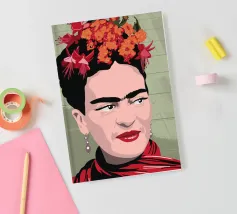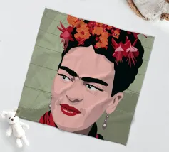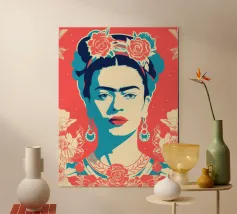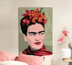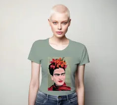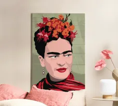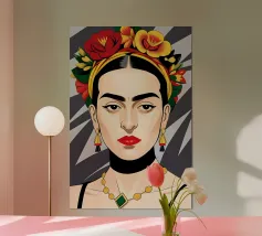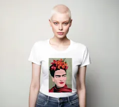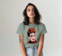 Ritratto di Frida Kahlo con fiori tra i capelli.