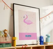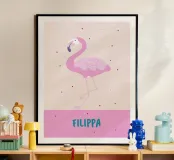 Fröhliches Namensbild mit Flamingo oder Affe poster