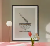 Semplice e moderna, questa stampa artistica incorniciata in legno è perfetta per la cucina. La combinazione di disegno elegante e tonalità neutre la rende ideale per aggiungere un tocco di stile alla tua casa. Ideale come regalo per gli amanti della cucina!