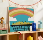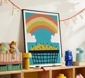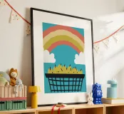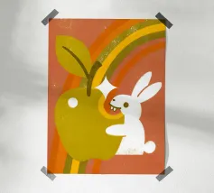 "Fruits and Rainbows" illustration: An explosion of color and freshness! This cheerful design combines fresh fruits and colorful rainbows.