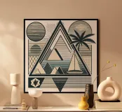 Questo design unico fonde forme geometriche ed elementi tropicali, creando un'estetica visivamente accattivante e moderna. Perfetto per chi apprezza l'arte con un tocco di avventura". (Questo design unico combina forme geometriche con elementi tropicali, creando un'estetica visivamente accattivante e moderna. Perfetto per chi apprezza l'arte con un tocco di avventura.