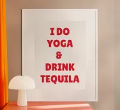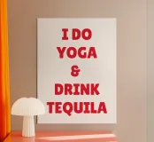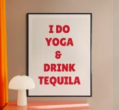 Divertente "Faccio yoga e bevo tequila", design con citazione in grassetto rosso poster