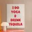 citazione sullo yoga e la tequila, design divertente sullo stile di vita, umorismo sul fitness e il divertimento, tipografia rossa in grassetto, scherzo sul benessere e il bere, citazione d'arte giocosa