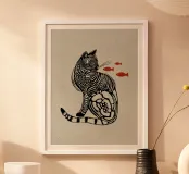Gatto in stile linoleografico con pesce