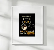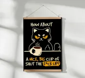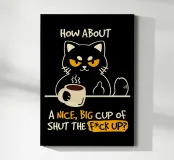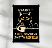 gatto tazza di caffè citazione occhi arrabbiati poster