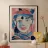 Questa opera d'arte presenta un volto astratto frammentato con linee decise e un mix di colori nero, bianco e giallo. Lo sfondo è pieno di forme geometriche, che si aggiungono al tema astratto generale.
