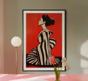 L'eleganza senza tempo incontra la precisione grafica: questa interpretazione minimalista della geisha combina l'estetica giapponese con la drammaticità della pop art occidentale. Le strisce bianche e nere del kimono contrastano fortemente con il rosso acceso e ricordano il linguaggio grafico di Lichtenstein. Un capolavoro di sintesi culturale che arricchisce gli ambienti con una calma zen e un'espressività moderna - perfetto per gli amanti dell'arte murale minimalista con un significato più profondo.