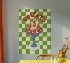 Scopri questa vivace stampa artistica di Gelato, perfetta per aggiungere un tocco di dolcezza e colore alla tua casa. Realizzata con materiali di alta qualità e incorniciata elegantemente in legno, questa opera è ideale per la cucina o la sala da pranzo, regalando un'atmosfera gioiosa. Non è personalizzabile, ma è un regalo unico per gli amanti del gelato e della dolce vita.