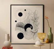 Questa opera d'arte astratta e minimalista combina forme geometriche, linee intricate ed elementi organici per creare una composizione di grande impatto visivo. Il gioco di tonalità bianche e nere aggiunge profondità e contrasto, mentre i dettagli delicati invitano a un'attenta osservazione. Questo pezzo è perfetto per gli interni contemporanei in cerca di un tocco di raffinatezza e di estro artistico.