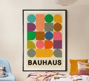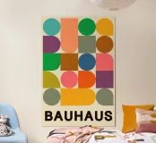 Questo poster rende omaggio all'estetica Bauhaus: forme chiare, colori decisi, equilibrio perfetto. La composizione di cerchi, semicerchi e rettangoli in colori retrò combina la storia del design con lo stile moderno degli interni. Ideale per uffici, studi o spazi abitativi eleganti: una vera e propria dichiarazione per chi ama l'arte e l'ordine. Geometrico. Senza tempo. Bauhaus.
