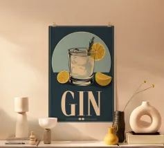 This Gin Print Poster brings a bold and stylish touch to any space. With its vibrant colors and playful design, it’s perfect for adding personality to kitchens, home bars, or even a living room. The retro-inspired bottle illustration is sure to catch the eye of any gin lover. Whether you’re looking to elevate your own décor or find a unique gift for someone who enjoys a good gin, this poster is a great choice. Available in multiple sizes to fit your space.
