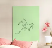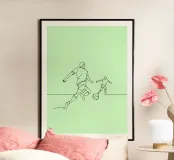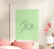 Line art minimalista di un giocatore di calcio in azione, che cattura l'agilità, la precisione e il movimento dinamico. Perfetto per gli appassionati di calcio e per le decorazioni ispirate allo sport.