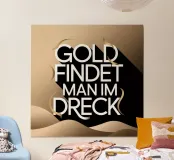 Il messaggio "L'oro si trova nello sporco" ci incoraggia a cercare valori e opportunità nascoste nelle situazioni difficili. Ci ricorda che le vere intuizioni e le preziose opportunità si trovano spesso nei momenti e nei luoghi più inaspettati. Questa frase ci ispira a vedere le difficoltà non come ostacoli, ma come opportunità di crescita e di scoperta. È un invito a riconoscere la bellezza e il potenziale nel quotidiano e ad ampliare la propria prospettiva.