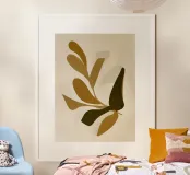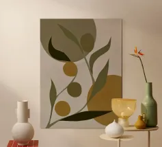 A minimalist exploration of organic shapes in warm ochres and deep olive tones. This abstract botanical composition celebrates the interplay of shadow and form, evoking a grounded, earthy sophistication.