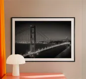 Golden Gate Bridge di sera | Monochrom poster con telaio in legno