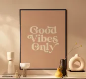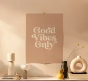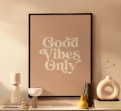 Elevate il vostro spazio con la stampa tipografica "Good Vibes Only". La morbida calligrafia color crema adorna con grazia uno sfondo beige caldo, creando un'estetica armoniosa e invitante. Questa elegante stampa emana positività e tranquillità, rendendola perfetta per qualsiasi ambiente della casa o dell'ufficio. Il design minimalista si adatta perfettamente a diversi stili di arredamento, dal moderno al rustico. Realizzata con materiali pregiati, questa stampa di alta qualità garantisce una bellezza duratura. Abbracciate l'ottimismo e create un'atmosfera serena con questo pezzo d'arte da parete senza tempo, che serve come promemoria giornaliero.