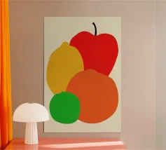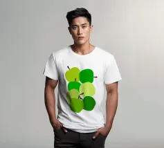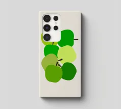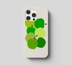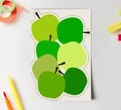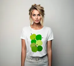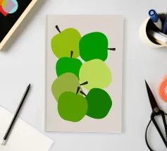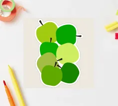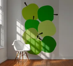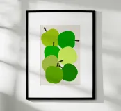 Una vivace illustrazione di mele verdi in una gamma di tonalità fresche e vivaci. Perfetta per gli amanti della frutta e dell'arredamento della cucina. Questa opera d'arte giocosa ed elegante conferisce un tocco di naturalezza a qualsiasi spazio. Ideale per coloro che apprezzano l'audace semplicità della food art.