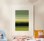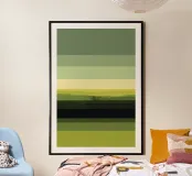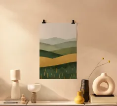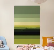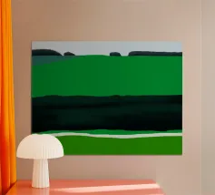 A minimalist composition of horizontal green tones evoking layered landscapes, from olive to forest hues. This abstract piece radiates calm, balance, and organic depth — a meditative wall accent for nature lovers and fans of modern design.