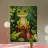 Rana verde brillante appollaiata su un ceppo d'albero circondato da un rigoglioso poster