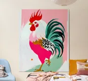 Cartoon, Drawing, Illustration, Painting, Animation, Animated cartoon, rooster, farm animals, whimsical, quirky, colorful, pastel, animals, pets, chicken, dreamy