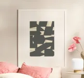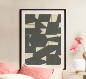 Aggiungi un tocco moderno e sofisticato al tuo spazio con questa stampa d'arte incorniciata in legno, caratterizzata da un design geometrico grigio elegante. Perfetta per ogni stanza della tua casa, questa opera d'arte è ideale per soggiorni, camere da letto o uffici.