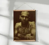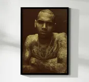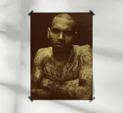Senza vergogna, Chris Brown guarda con feroce sfida: l'inchiostro del suo corpo e la sua anima nuda sono resi in calde tonalità seppia.