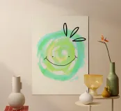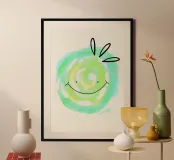 Aggiungi un tocco di vivacità alla tua casa con questa stampa d'arte incorniciata in legno. Il design giocoso con un sorriso rende questa opera perfetta per la camera dei bambini o per un'area giochi. Realizzata con materiali di alta qualità, questa stampa apporterà gioia e colore a qualsiasi stanza.