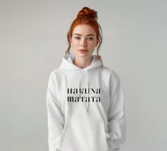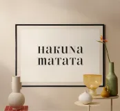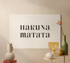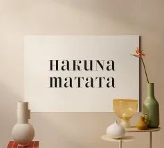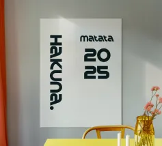 Abbracciate lo spirito spensierato con la nostra stampa tipografica "Hakuna Matata". Questo disegno in bianco e nero dona un'atmosfera moderna e positiva a qualsiasi spazio. Perfetto per aggiungere un tocco di umorismo alla vostra casa o al vostro guardaroba, sia come poster che come borsa, tazza o abbigliamento. Godetevi le semplici gioie della vita con questo pezzo versatile e divertente!