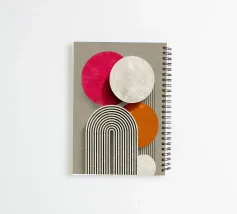 Questa ispirazione astratta Bauhaus combina geometria e simmetria in un design moderno. Con cerchi bianchi, semicerchi e strisce in grigio, arancione e rosa, l'illustrazione crea un armonioso gioco di colori. Le forme architettoniche a strisce retrò conferiscono all'opera un'estetica minimalista e strutturata.