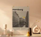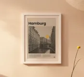 Scopri il poster minimalista di Hamburg, un vero e proprio pezzo d'arte che porta il fascino della città tedesca nel tuo spazio. Perfetto per gli amanti della città e per chi cerca un tocco di stile contemporaneo nel proprio arredamento.