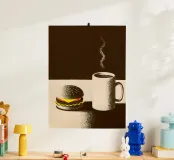 L'abbinamento perfetto per iniziare la giornata o riempire la pancia! Questo disegno presenta un delizioso hamburger e una golosa tazza di caffè, ricca di dettagli e colori accattivanti.