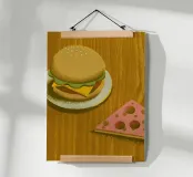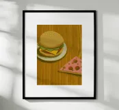 Il mix perfetto di due cibi preferiti! Questo disegno presenta un delizioso hamburger e una pizza con dettagli appetitosi.